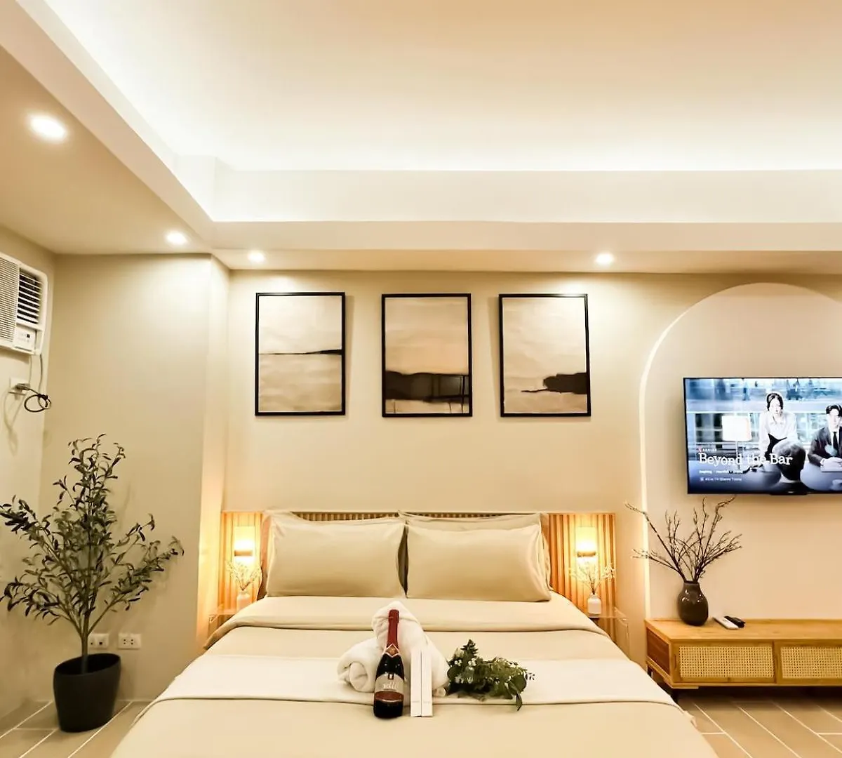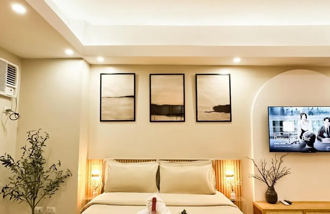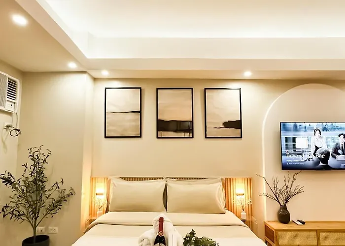家族向けのExquisite Japandi 2 & Mediterranean Breeze At Venice W Grand Canal View! マニラ市アパートはブエンディア鉄道駅から4.8キロメートル離れた所で、ベニス グランド キャナル モールから徒歩で約5分の場所にあります。 このアパートにはテラスがあり、究極のリラクゼーションを楽しむことができるプールも提供しています。